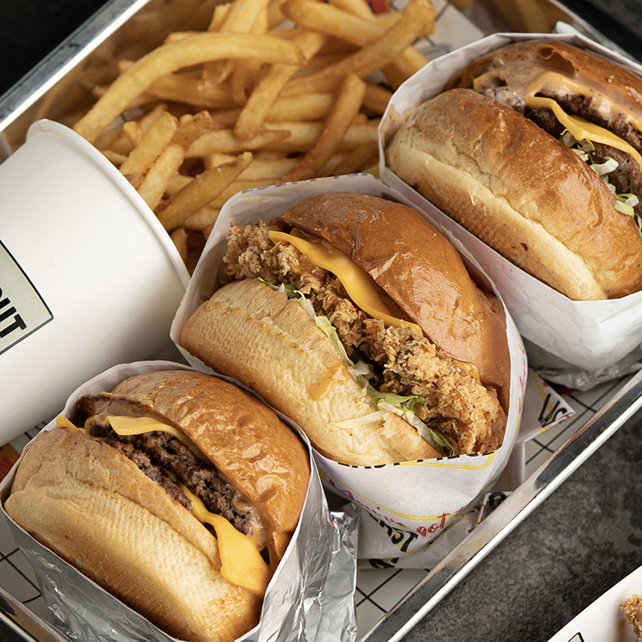 My favorite is the double sold out burger. The maple chicks is also tasty if you prefer a chicken option. The basic beef burger and the sold out chicken burger were average. The space is clean and the service is relatively quick.