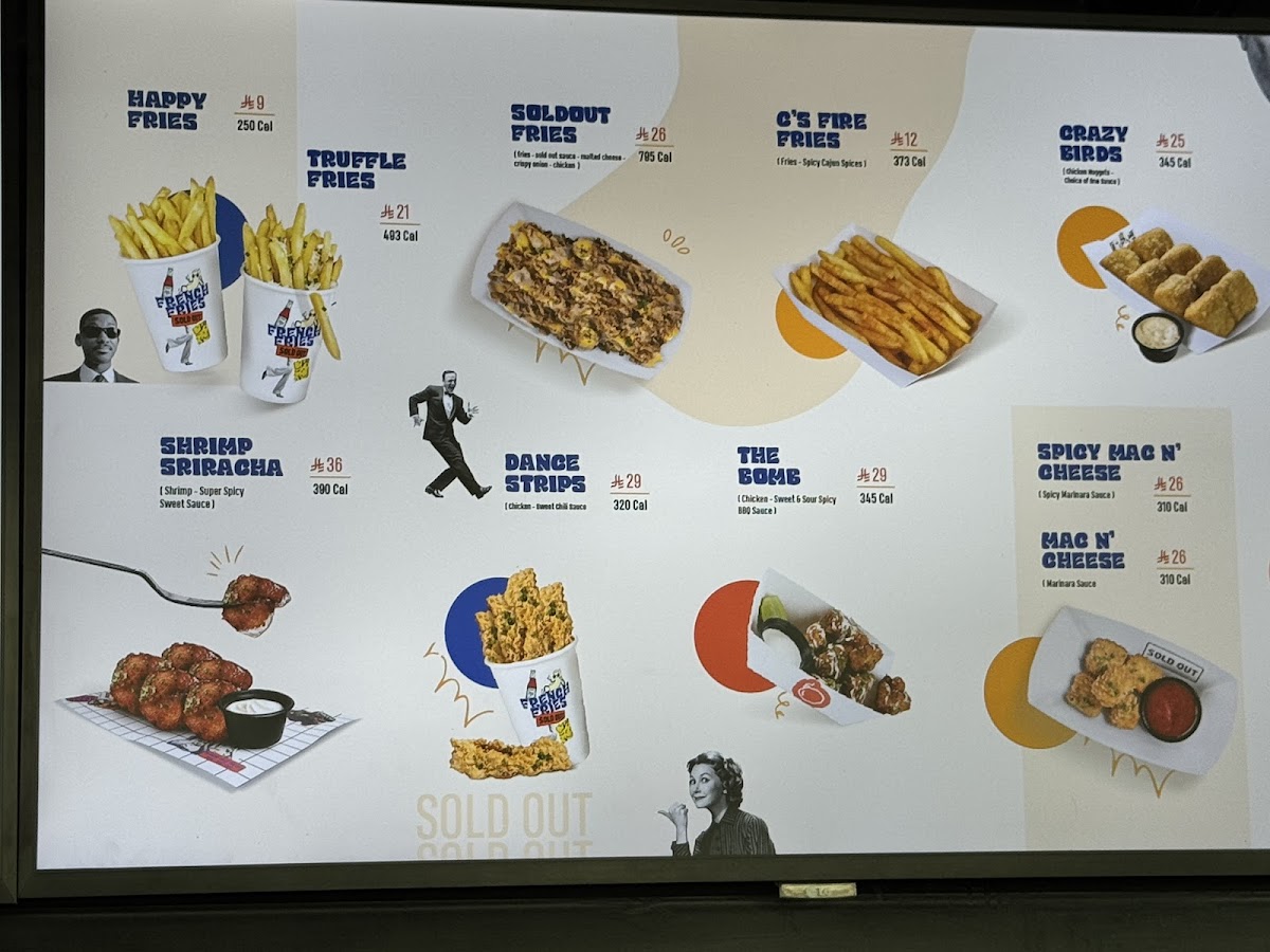 Highlights like the Sold Out Burger and Chicken Strips provide satisfying, flavorful options that pair well with the signature Soldout Fries or creamy Mac & Cheese. For those who appreciate a bit of spice, dishes such as Shrimps Sriracha add a lively kick without overwhelming the balance of flavors. The menu also includes a variety of sauces—from homemade ranch to truffle mayo—that allow each dish to be customized to individual tastes.